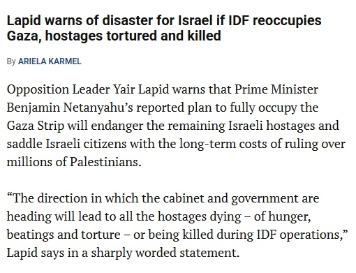 在内塔尼亚胡发出“占领加沙”狂言后,以色列反对党“拥有未来”党领导人拉皮德6日表示,占领加沙无论从作战、道德还是经济角度看都是一个糟糕的主意,大多数以色列人已经不支持继续战争。