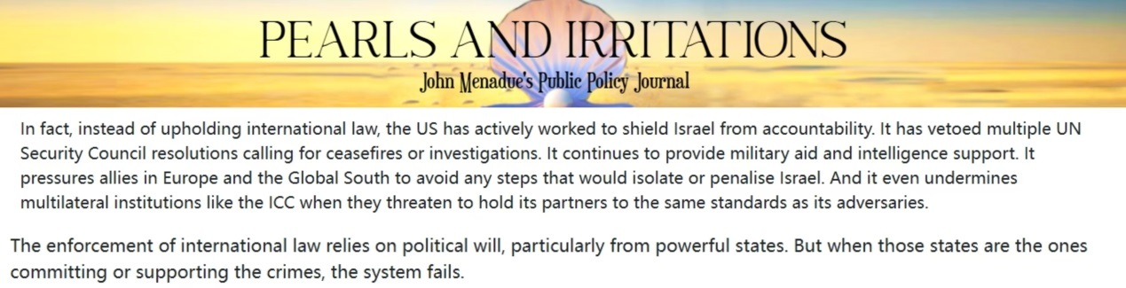 文章强调,国际法的执行依赖政治意愿,尤其是大国的政治意愿。但当这些国家本身就是罪行的实施者或支持者时,整个国际法体系便会失效。