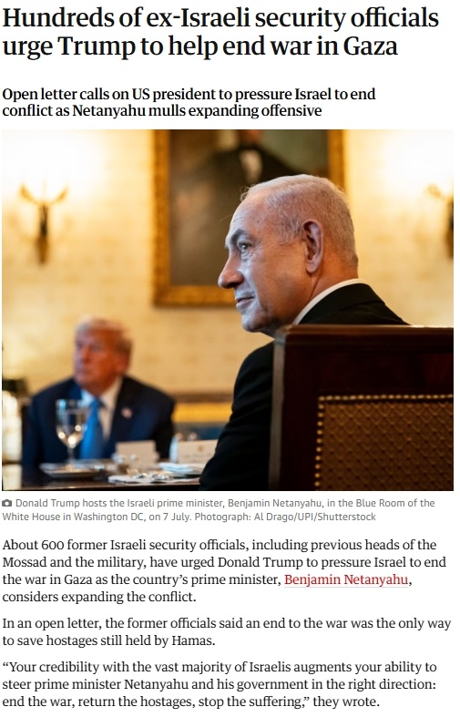 同时,他们还联合呼吁美国总统特朗普发挥作用,“引导内塔尼亚胡及其政府走向正确方向:结束战争、带回人质、停止苦难”。