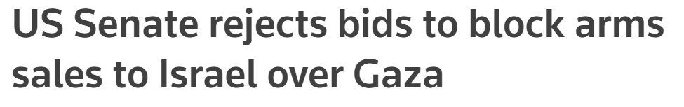 不仅如此,美国国会参议院几天前还否决了两项以保护加沙平民为由要求白宫中断对以色列武器销售的决议草案。