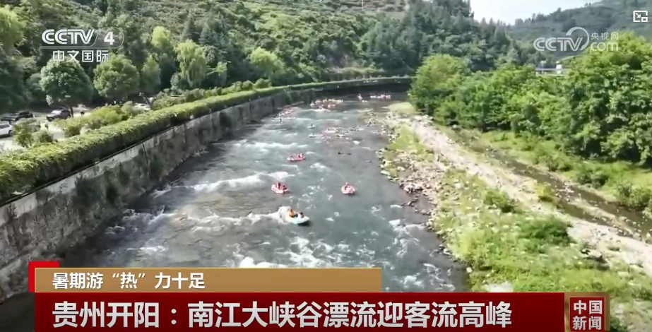贵州贵阳市开阳县南江大峡谷景区,凭借碧浪清波和清凉体验,也迎来客流高峰,漂流艇穿梭如织,玻璃水滑道、飞拉达攀岩等项目,让游客体验更丰富,也成了炎炎夏日里亮眼的清凉风景线。