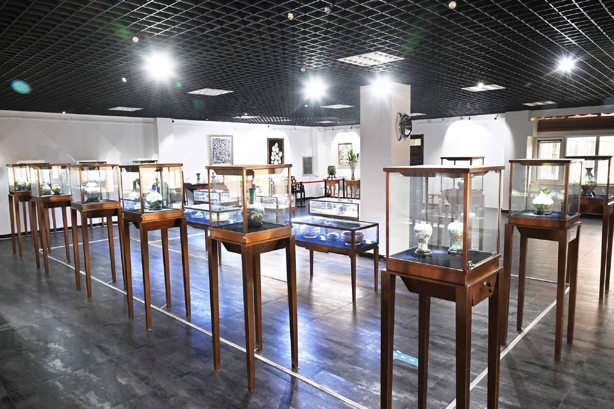 景泰蓝,学名“银胎掐丝珐琅”,其华美背后是数十道工序的千锤百炼。博物馆对这门皇家工艺“全流程”深度揭秘。制作工艺区域,高清影像与实物工具结合,清晰展示了制胎、掐丝、点蓝、烧蓝、磨光、镀金六大核心步骤。用细如发丝的扁银丝,仅凭镊子和小剪,在银胎上精准拗出繁复纹样并粘牢,其耐心与精准令人屏息。获工艺美术百花奖金奖的《雀羽斑斓》捧盒、被国家博物馆收藏的《福禄大吉瓶》等创新作品,都可以在馆内一睹芳容,体会非遗在当代的生命力。“点蓝”更是一场色彩的魔术,匠人用特制小铲(蓝枪)将各色釉料颗粒填入丝线间隙,釉料在高温熔融前呈现的灰暗色调与烧制后焕发的宝石般光彩形成戏剧性对比。动手体验活动可以让观众在微型银胎上尝试填色,感受釉料在指尖流动的温度与乐趣。