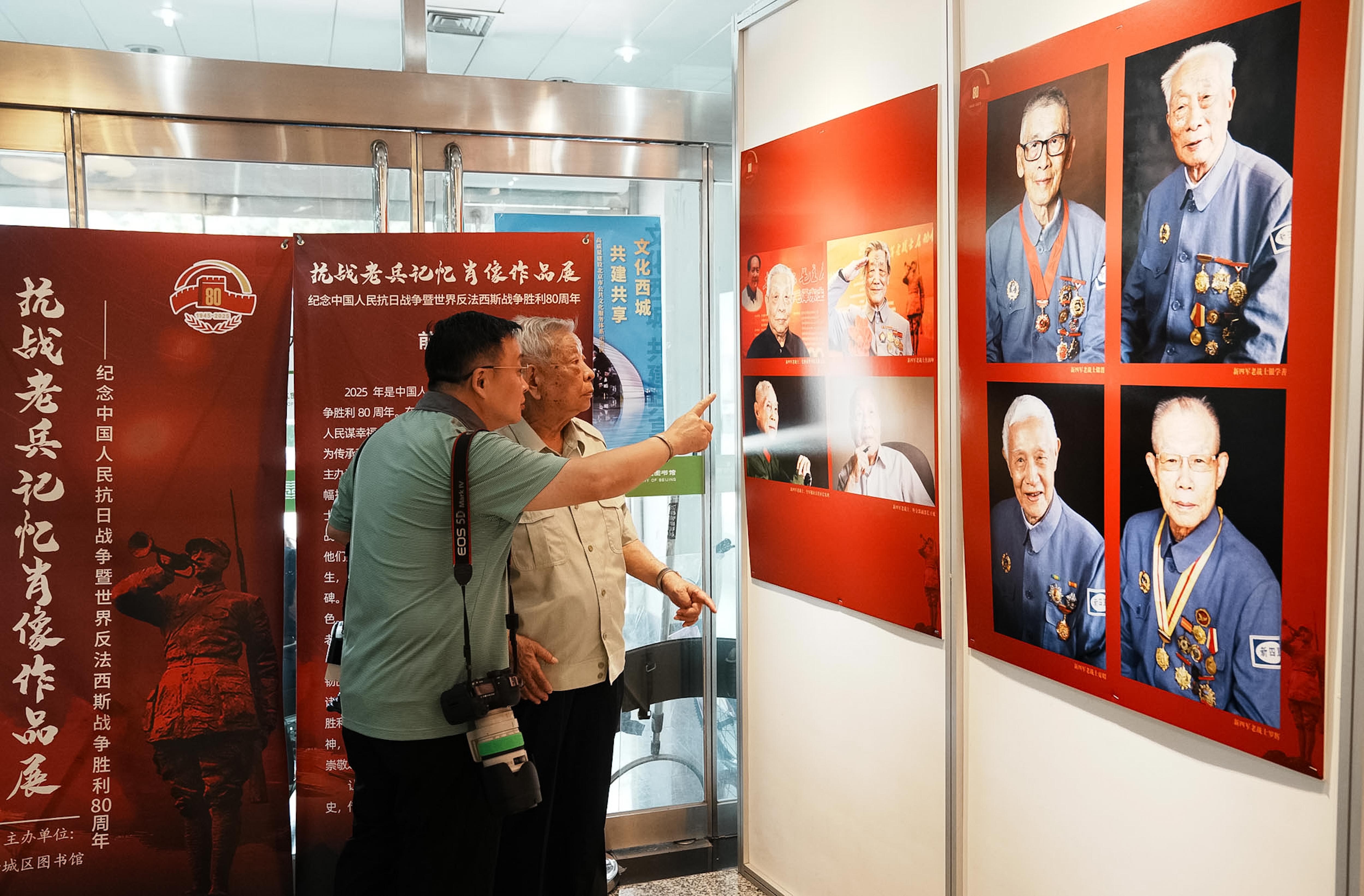 8月7日,为传承和弘扬伟大的抗战精神,抗战老兵记忆肖像作品展在北京市西城区图书馆举行,集中展示了摄影师郭海鹏拍摄的150幅抗战老兵肖像作品。