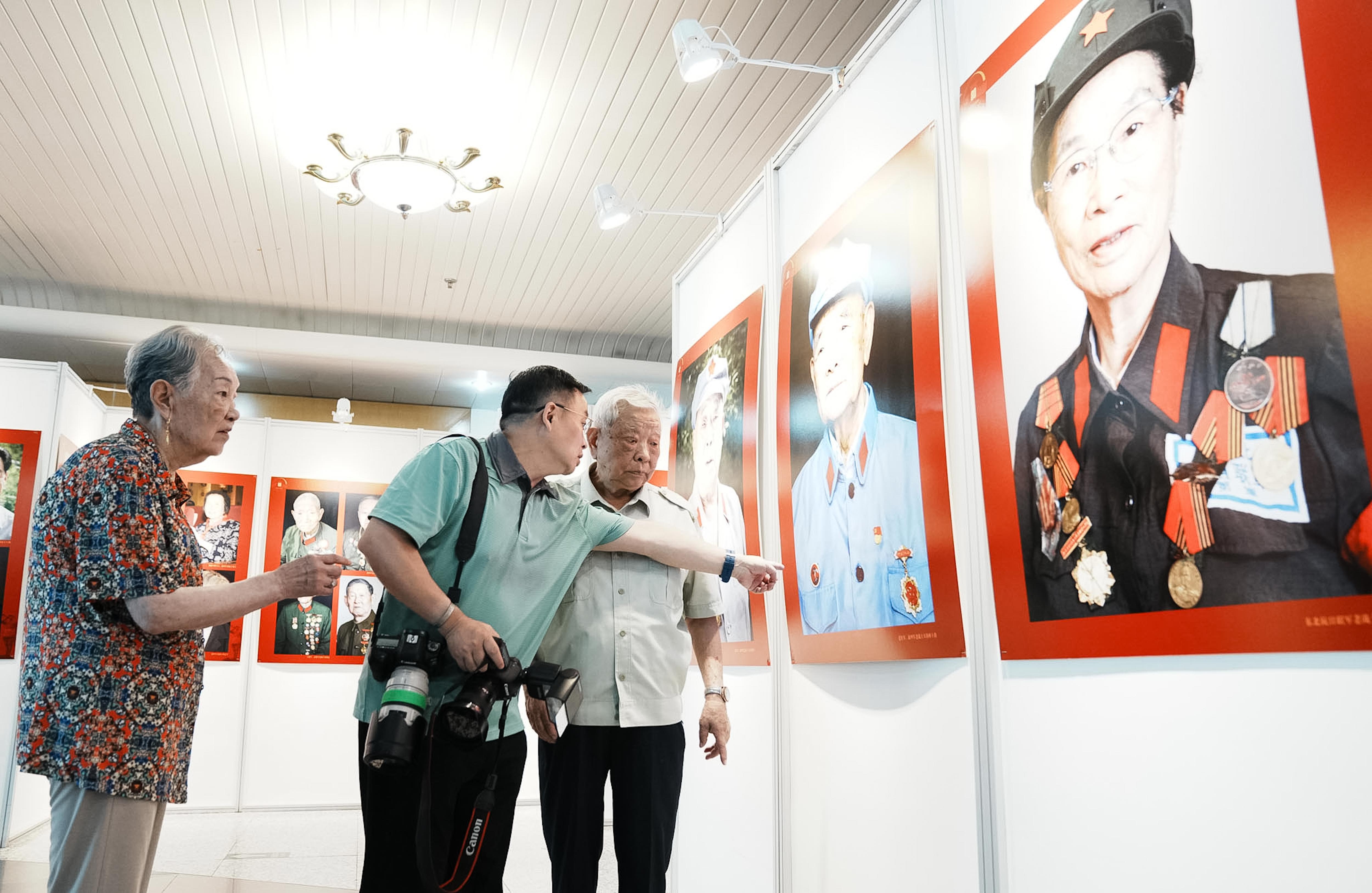 150幅摄影作品,150个珍贵肖像,展示了抗战老兵们的英雄形象。摄影师郭海鹏历时20余年,以充沛的热情和坚韧的毅力跟随拍摄了300余位抗战老兵,捕捉精彩瞬间,刻画出诸多独具风采的肖像。参观者通过观看这些感人的肖像作品更好地铭记历史,传承红色基因,致敬抗战老兵。