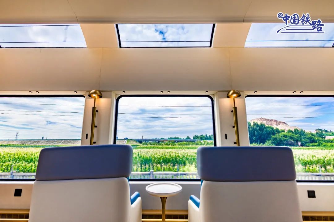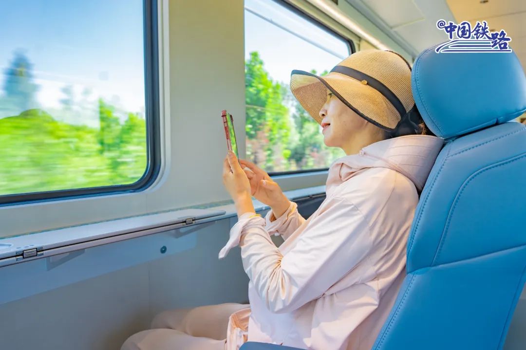 “这趟火车的窗户好大,太适合看景色了,在火车上看一天我都不会腻!”