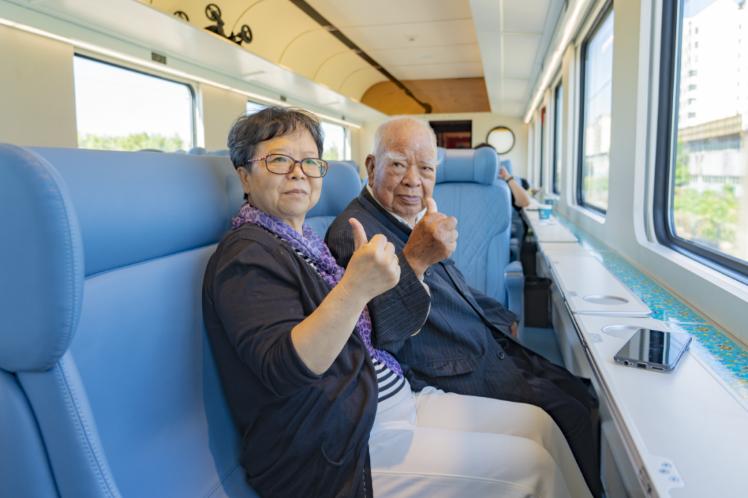 “车上各项适老措施都很到位,列车工作人员都特别贴心。尤其这个列车座椅,太舒服了!”