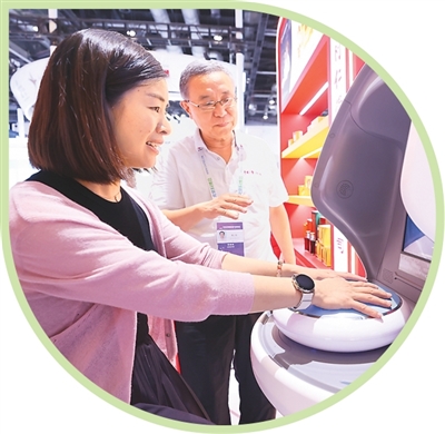 参观者在北京科博会上体验AI健康筛查服务系统。陈晓根摄(人民视觉)