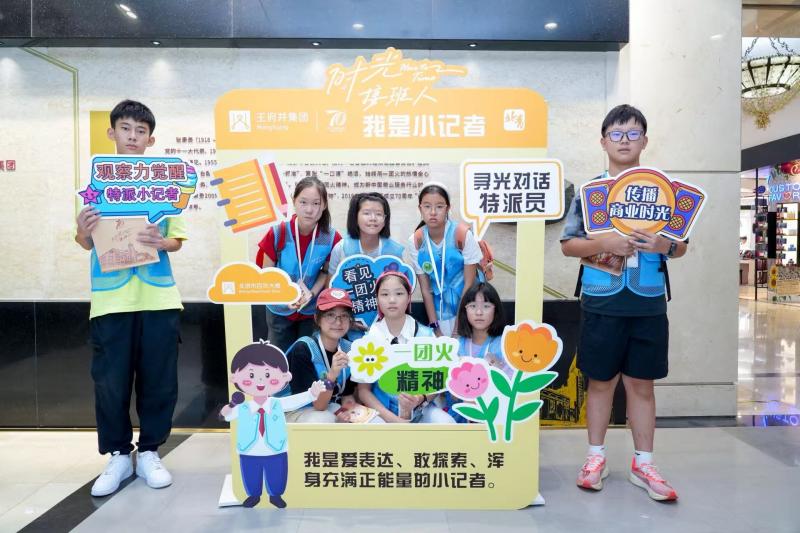 8月2日,由王府井集团、北京日报报业集团主办,北京青年报新媒体有限公司承办的“时光接班人・一路童行话时光”首场活动正式启动。在承载着首都商业记忆的地标建筑——“新中国第一店”北京市百货大楼中,30名佩戴“寻光特派员”记者证的小记者展开了一场跨越时空的“寻光特派之旅”。