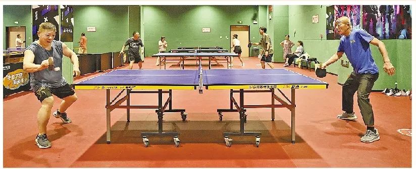 安徽省合肥市庐阳区海棠街道,市民在健身中心打乒乓球。赵明 摄(影像中国)
