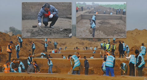 考古工作人员将大块的土拍碎后放入特制的塑料桶里,再往桶里注水,轻轻拍打水面。由于水波的浮力,密度较大的杂质就会沉下去,而干燥的碳化物则浮在水面,这就是浮选的过程。经过浮选,最终便得到了碳化颗粒。样品经鉴定、测年研究后,确认为七种作物:麻、大豆(菽)、小麦、稻米、粟、黍、红豆,除红豆外,与汉代所说五谷相对应。同时,这也是目前长城沿线发现的最早的“五谷”。