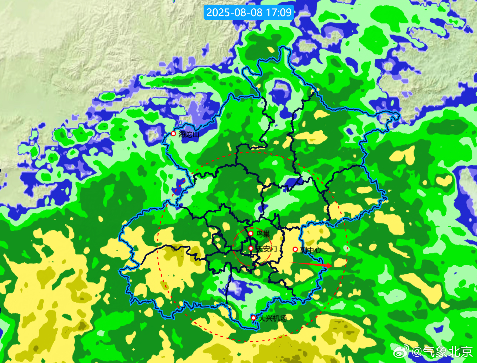 北京市气象局微博8月8日17:21发布: