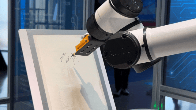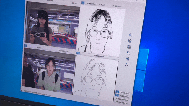 △AI绘画机器人的小笔“哆哆哆”,不一会儿观众就有了新鲜出炉的画像。孙佳蕊/摄