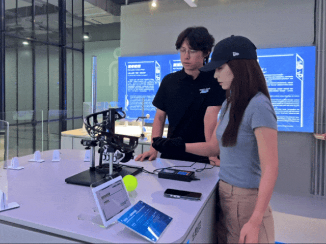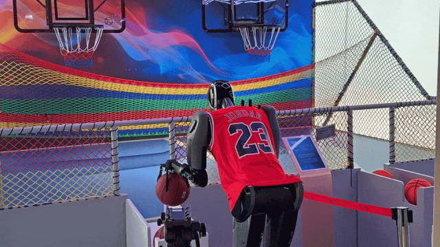 第一站,跟着小亦走进全球首家具身智能机器人4S店,Follow me!机器人4S店一共4层4000平方米,二层是“未来互动区”,三层是“智慧维保区”,四层是“尊享共识区”。其中,二层“未来互动区”好玩的最多,与仿人机器人“爱因斯坦”对话和“乔丹”投篮,看机器人踢足球和AI比拼脑电波,咱们直接“开玩”!