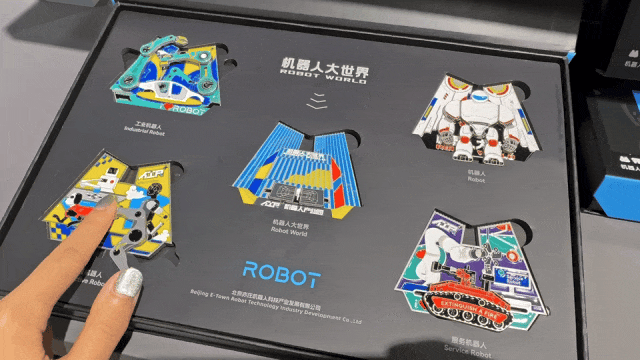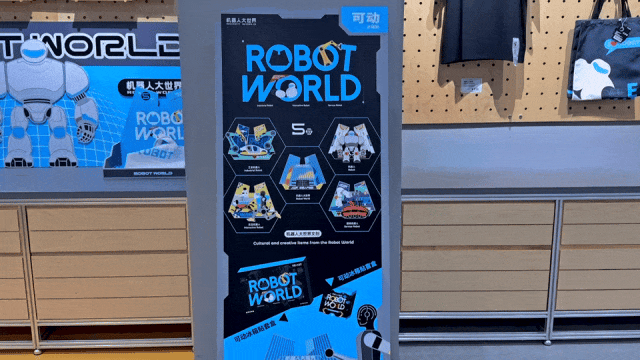 二层除了机器人4S店,还有机器人大世界文创区,30多款机器人文创产品上线,满满都是精品。