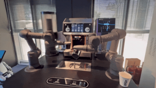△机器人咖啡机“左右开弓”制作拉花拿铁,又麻利又专业,成品超棒!孙佳蕊/摄