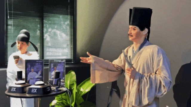 △仿人机器人李白和苏轼在餐厅为食客讲脱口秀。孙佳蕊/摄