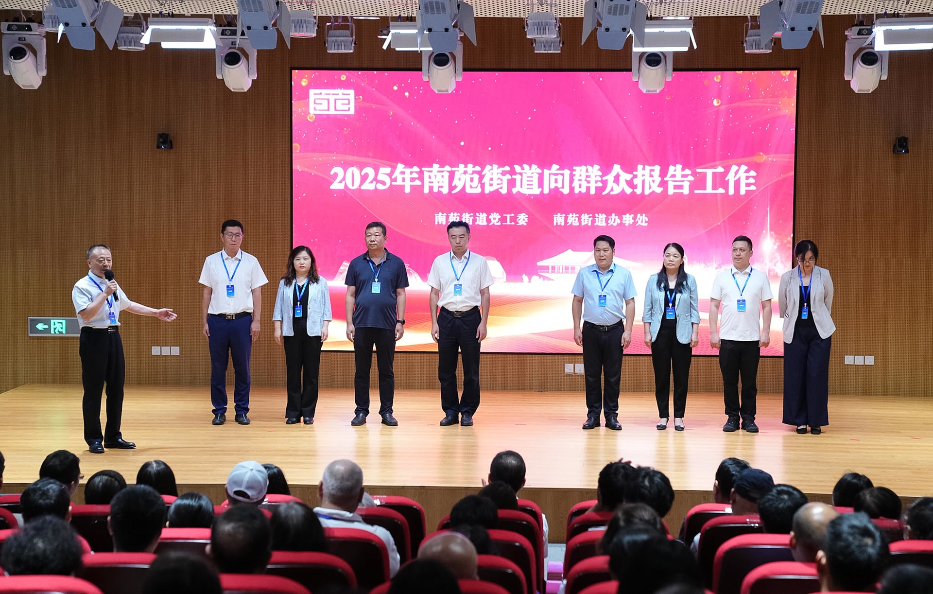 8月8日下午2时30分许,丰台区档案馆报告厅内,南苑街道党工委副书记、办事处主任蒋加强正在做工作报告,台下听取他报告的,是辖区400多名居民、村民、新就业群体等代表。
