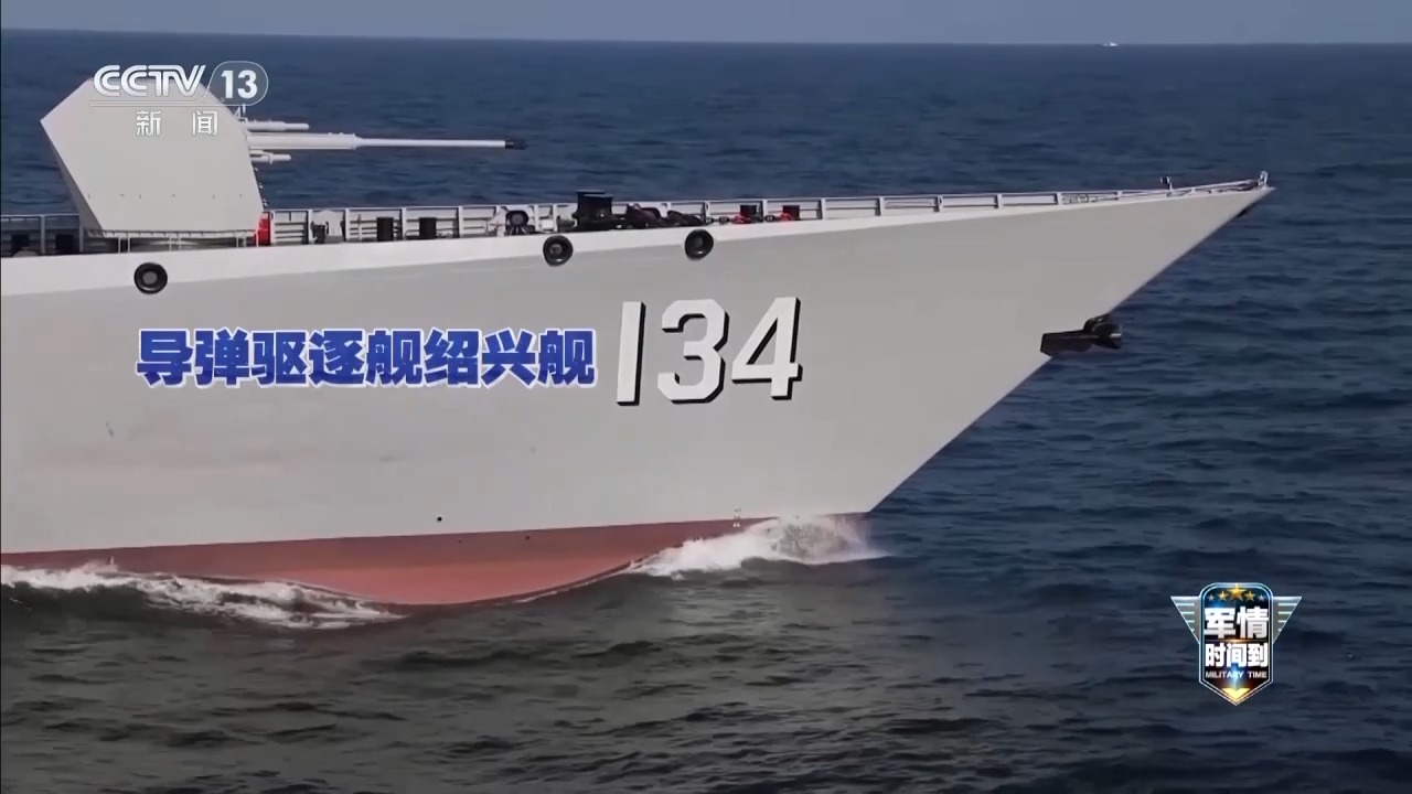绍兴舰,舷号134,是我国自主设计建造的052D改进型导弹驱逐舰,2022年3月入列,满载排水量7000余吨。具有较强的战场探测感知、电子水声对抗及综合攻防能力,主要担负编队区域防空、对海突击等任务。此次“海上联合-2025”联合演习期间,面对一些国家的飞机和舰船不断出现在周边,绍兴舰从容淡定地向外发出中国声音。