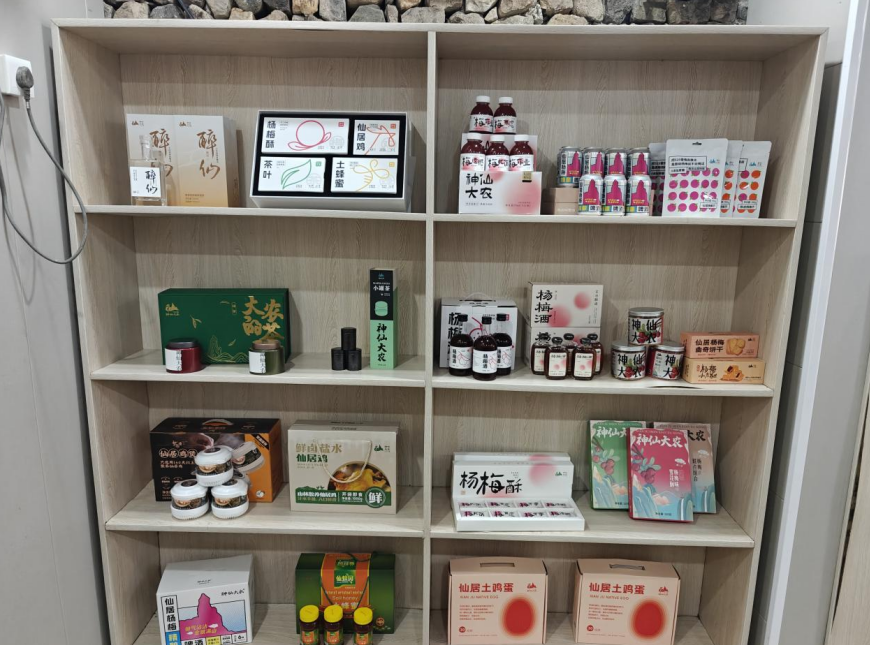 在不远处的“蜜蜂工坊”小屋,墙面贴的“蜂富林坑”四字格外醒目。土蜂蜜、土鸡蛋、杨梅酒、茶叶等特色农产品被摆得整整齐齐。