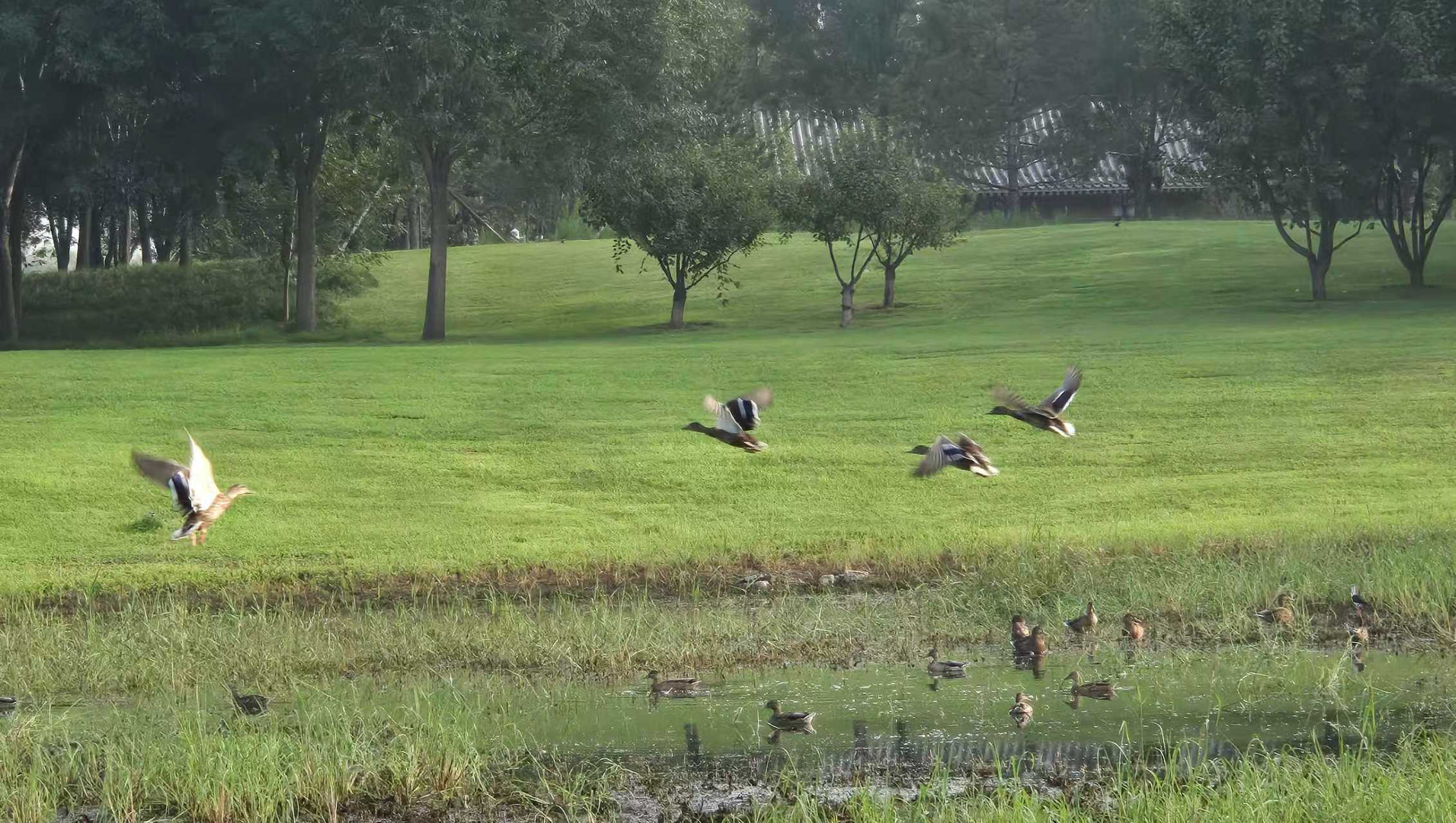 花影摇曳,树影婆娑,通州千年守望林晨景优美