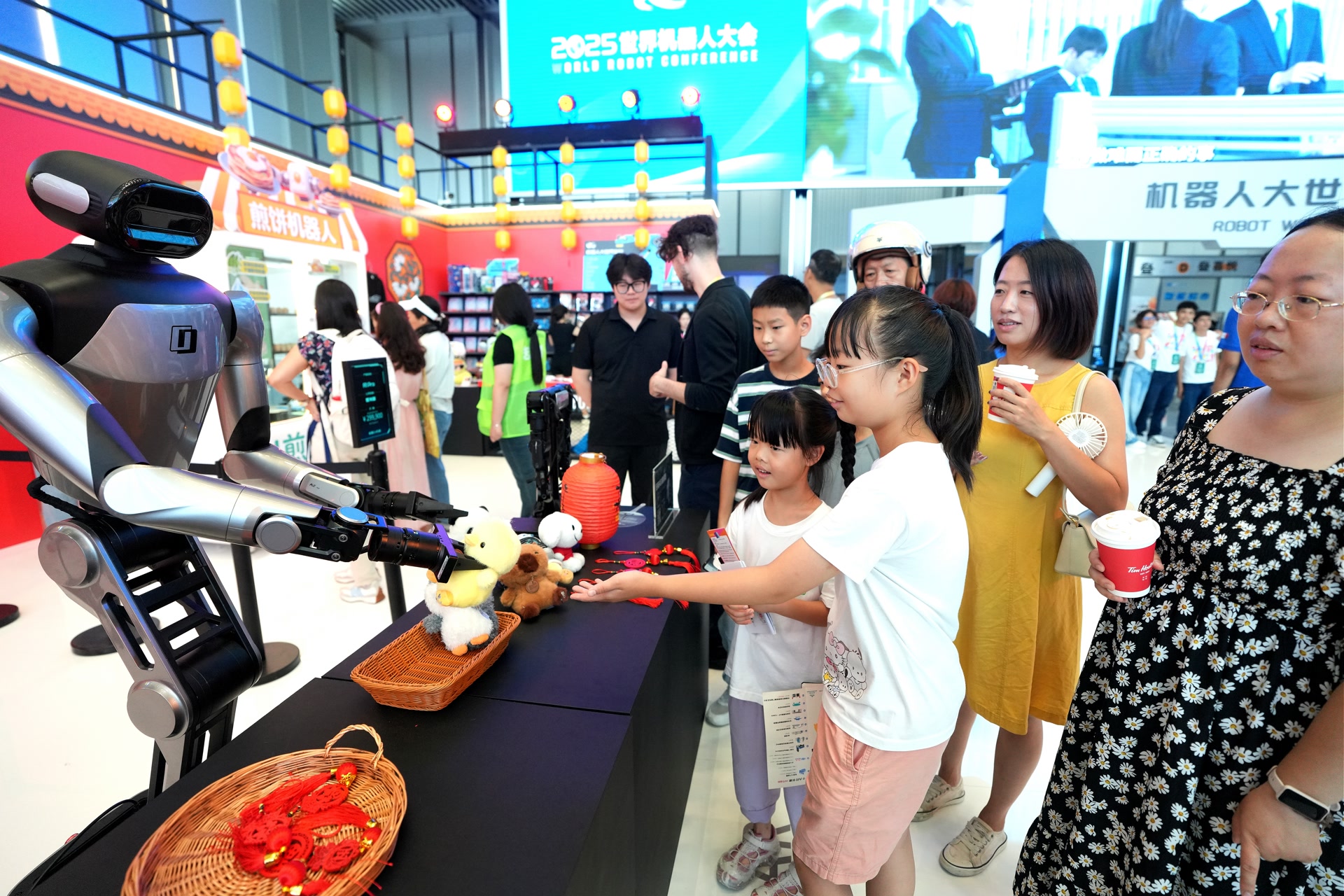 今年的世界机器人大会专门设置了会客厅。会客厅里,星海图“R1 Pro”机器人正在“卖”机器人,仿人机器人“小柒”热情地和人打招呼,可乐机器人、饮料机器人、薯条机器人等正在制作“赛博美食”,会射箭、下棋的各种机器人引来人们围观互动,20家企业、26个机器人展品让人目不暇接,展开了“机”智生活的新图景。
