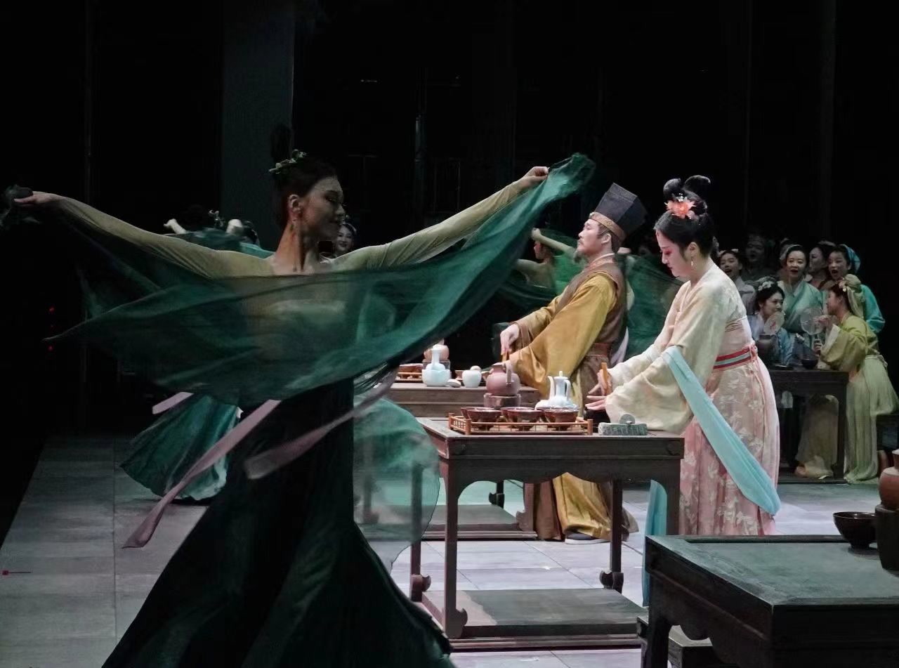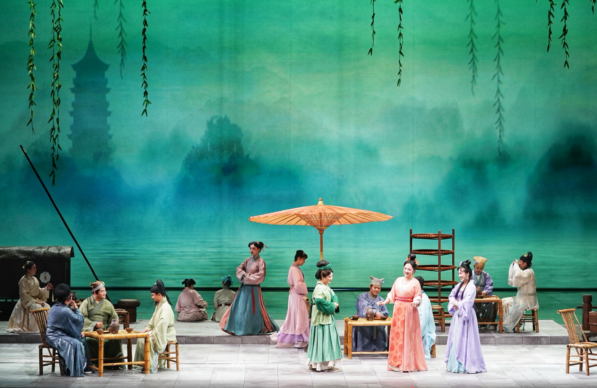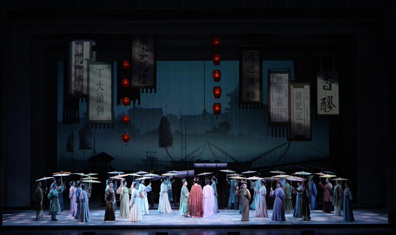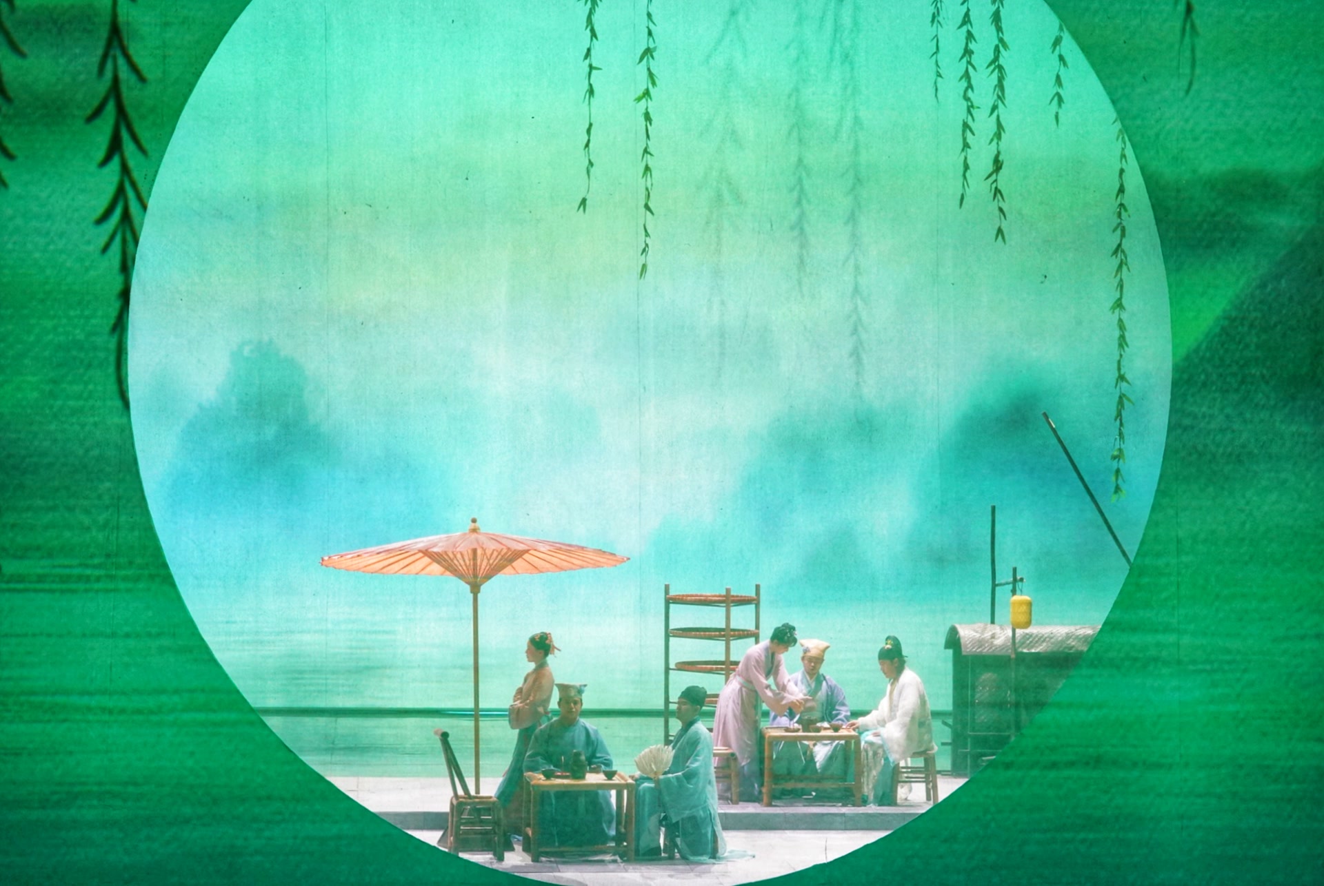 一面团扇映于台前,或富庶旖旎、或山水清雅的丹青笔触从扇面上流过,掀开一幅古韵盎然的宋代画卷。8月8日和10日,上海歌剧院与腾讯视频联合出品的新古典国风歌剧《梦华录》亮相2025国家大剧院歌剧节,指挥家指挥张诚杰执棒上海歌剧院交响乐团,携手徐晓英、于浩磊、周琛、曹琳等多位主演歌唱家,一道展现了东西方艺术的碰撞交融。