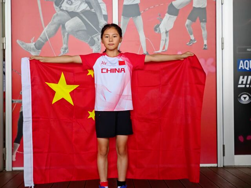 近日,在日本川崎举行的世界青少年跳绳锦标赛(JWC)中,来自山东青岛李沧区东川路小学五年级(1)班的12岁学生曹馨月,最终以1056次的成绩夺得了3分钟单摇跳(12-15岁女子组)冠军。
