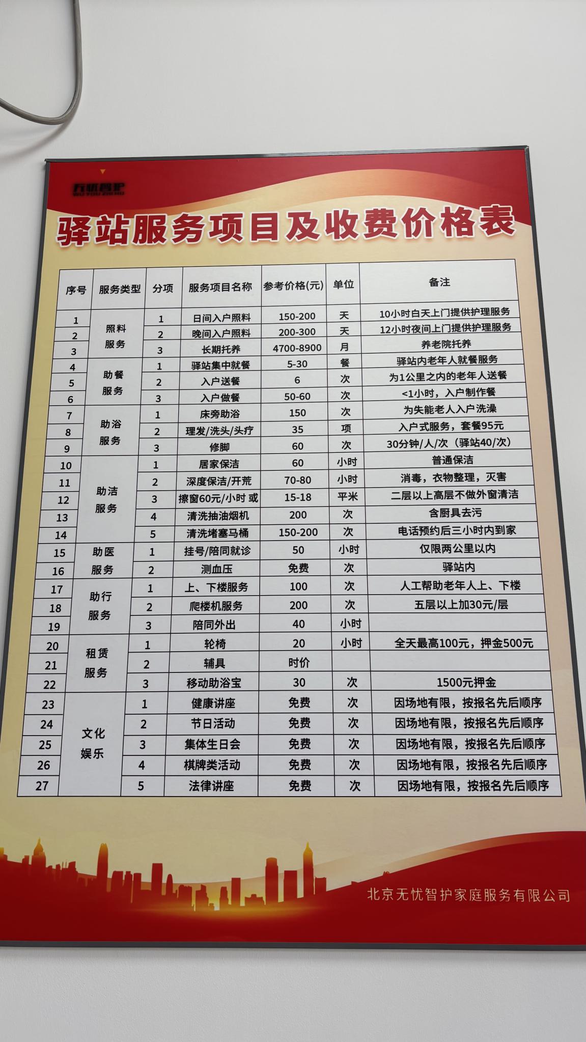 西营前街驿站的运营方,是北京无忧智护家庭服务有限公司,他们同时还运营着艺苑西里驿站,承接共约240余位家庭床位老人。