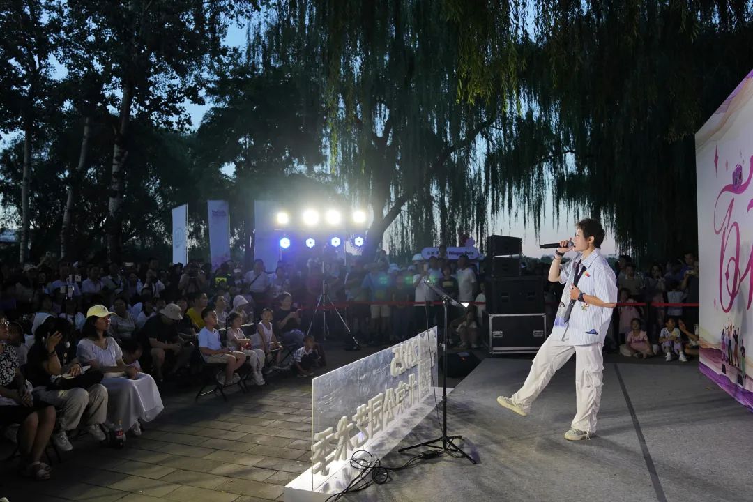 8月9日晚,当暮色温柔笼罩玉渊潭公园,中堤南口的“百花声度”露天音乐会为纳凉游园的市民游客献上了一场音乐盛宴。舞台依水而设,晚风携着湿润水汽轻抚面颊,玉渊潭公园得天独厚的自然环境,成为这场音乐会最动人的“背景乐”,为初秋之夜赋予了别样的诗意与浪漫。