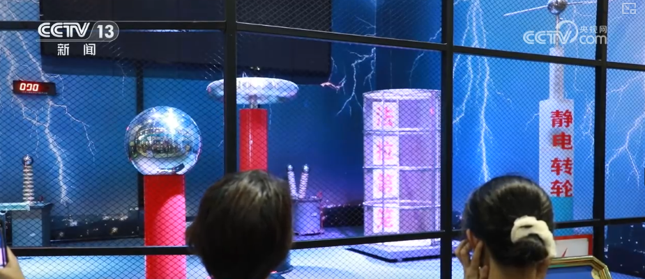工作人员介绍,车辆被雷击后依然安全的科学原理,正是“法拉第笼”效应。在科技馆内,专业人员通过特斯拉放电装置和法拉第笼,模拟演示了这一现象。