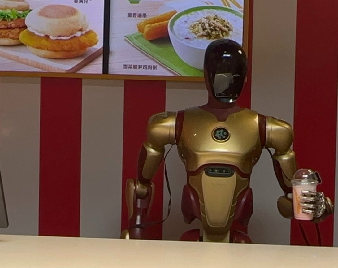 昨天,以“麦麦岛”为创意主题的麦当劳朝阳公园南路餐厅亮相。在朝阳区麦子店街道的搭台下,即将参加2025世界人形机器人运动会的智平方科技携“明星”机器人“Alpha Bot 2爱宝”前来探店,带领顾客提前打卡麦子店区域消费新场景。