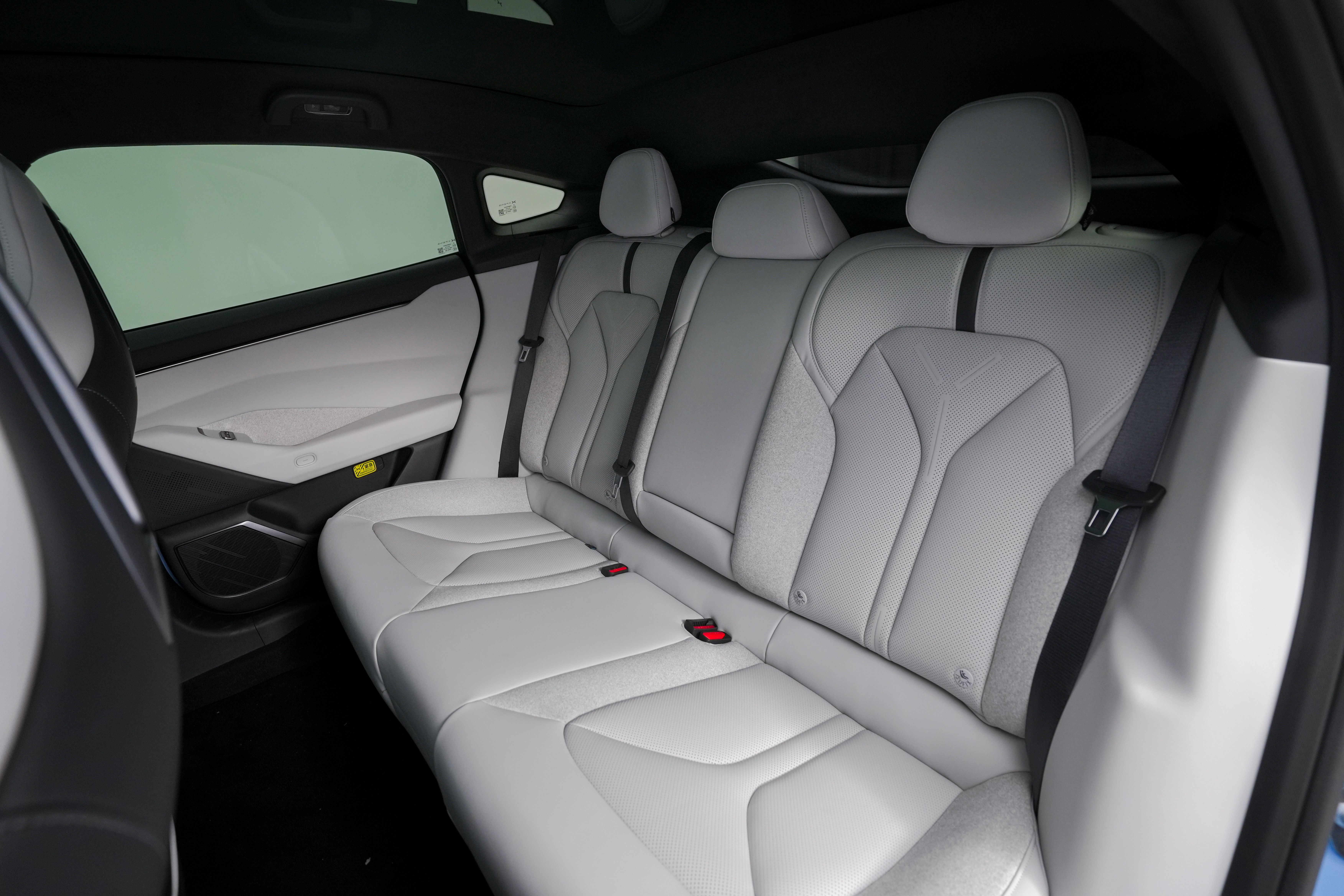 空间与舒适方面,全新小鹏P7也有不俗表现。前排一体式运动座椅采用Nappa真皮与Dinamica超纤绒材质,配备通风、加热、按摩、16向座椅调节、头枕音响等;395毫米超低坐姿,营造出浓郁的轿跑氛围。后排空间同样令人惊喜,横向宽度达1400毫米,可轻松容纳3人,膝部空间为120毫米,靠背角度30度,带来舒适的乘坐体验。全系标配的大掀背尾门与前后双备厢,使储物空间达到631L升,再加上全车33处收纳设计,能满足多样的储物需求。