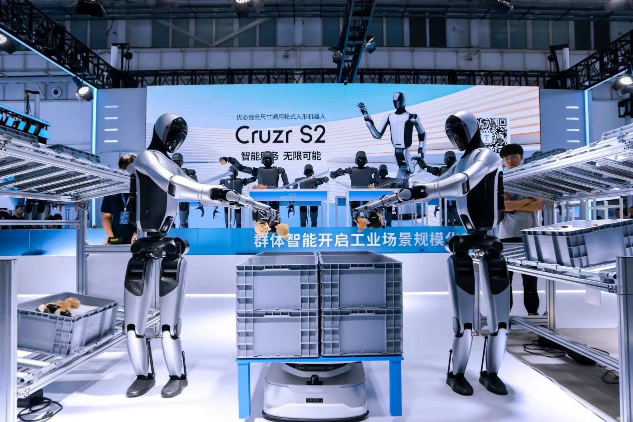 大会期间,优必选正式发布全尺寸通用轮式人形机器人Cruzr S2,通过搭载优必选自研人形机器人协作智能体Co-Agent,Cruzr S2融合视觉激光融合导航、学习型运动控制等具身智能关键技术, 实现复杂场景高效稳定穿行,支持全空间范围搬运与亚毫米级精度操作,满足分拣搬运、生产装配、药品转运及迎宾导览等多场景多任务作业需求,能有效助力企业提升运营效益,实现产业高质量发展。