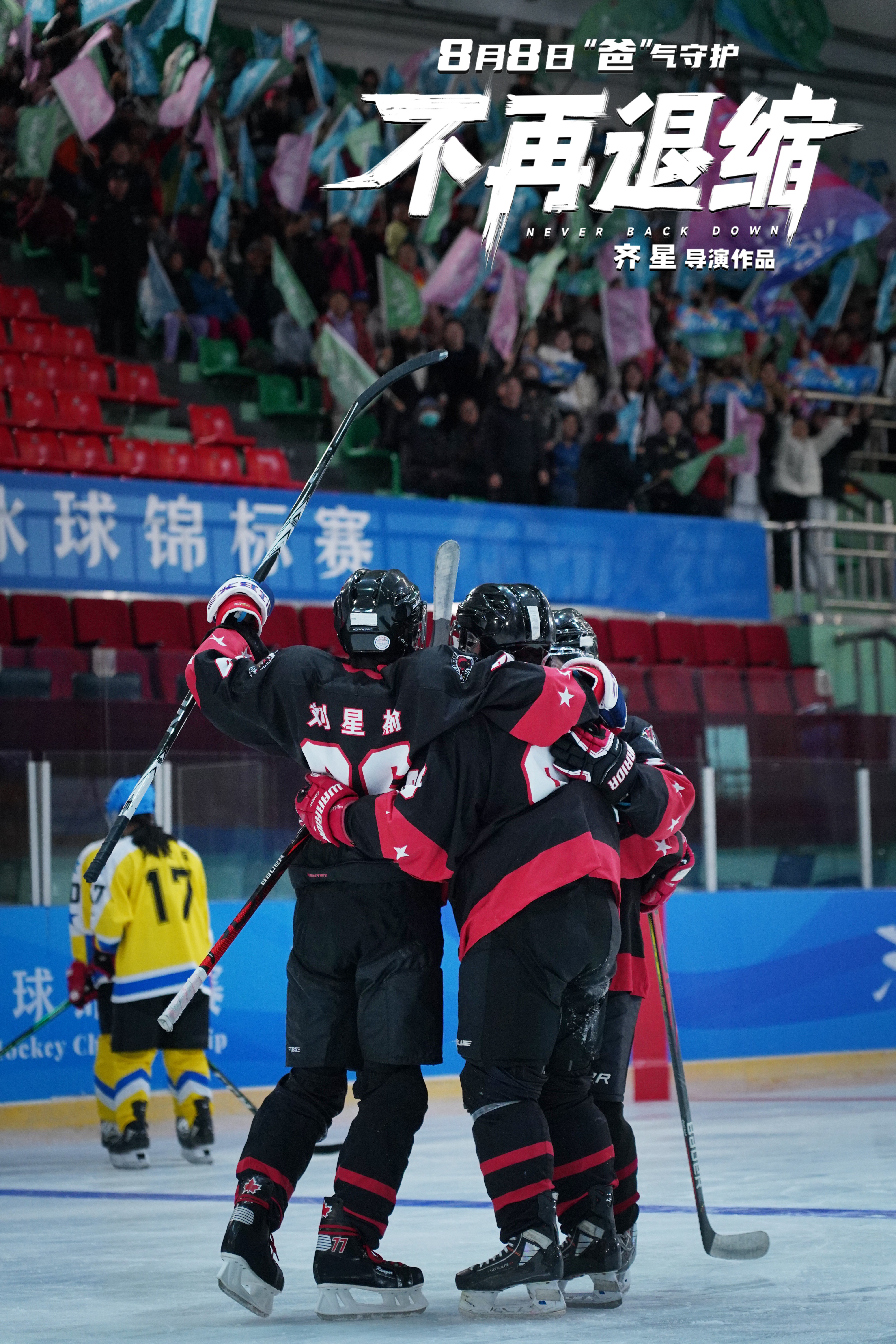 《不再退缩》由潘斌龙、侯佳音和左小青主演,讲述了普通工人父亲刘中华(潘斌龙饰),在发现小女儿刘星榆(侯佳音饰)的冰球天赋后,以永不放弃的精神坚持十余年,倾尽全力帮助女儿战胜了天生跛足,并在冰球场上赛出风采的故事。