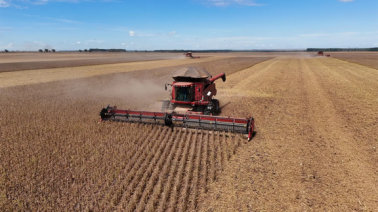 联合收割机正在巴西马托格罗索州收割大豆。图源:外媒