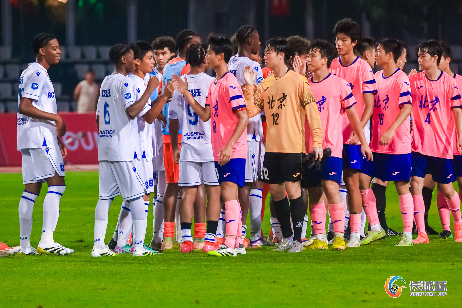 8月14日晚,第十届长城杯国际青少年足球邀请赛在北京国家体育场室外热身场开赛。在雨中进行的揭幕战上,法甲欧塞尔俱乐部U16队以5比0击败北京U16队。