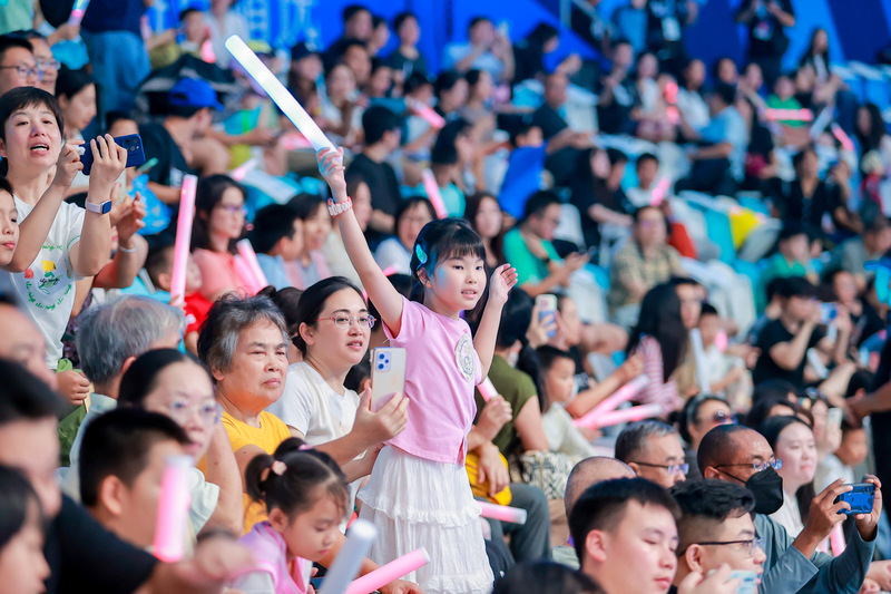 全场集结亮相后,举行奏国歌仪式。裁判员、机器人运动员进行赛前宣誓。随着“智芯”点亮仪式举行,全场响起运动会主题曲《智竞向未来》的华彩乐章,整场开幕式步入尾声。