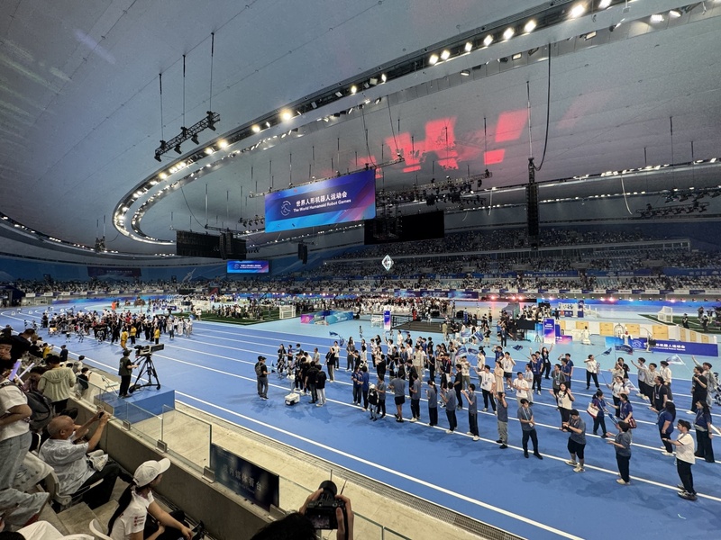 2025世界人形机器人运动会今天(8月14日)在国家速滑馆“冰丝带”开幕。在本次开幕式上,歌舞表演、人机互动、服饰走秀等节目轮番上演,上演了一场兼具科技感和艺术性的“机器人秀”,描绘出“人机共生”的崭新图景。