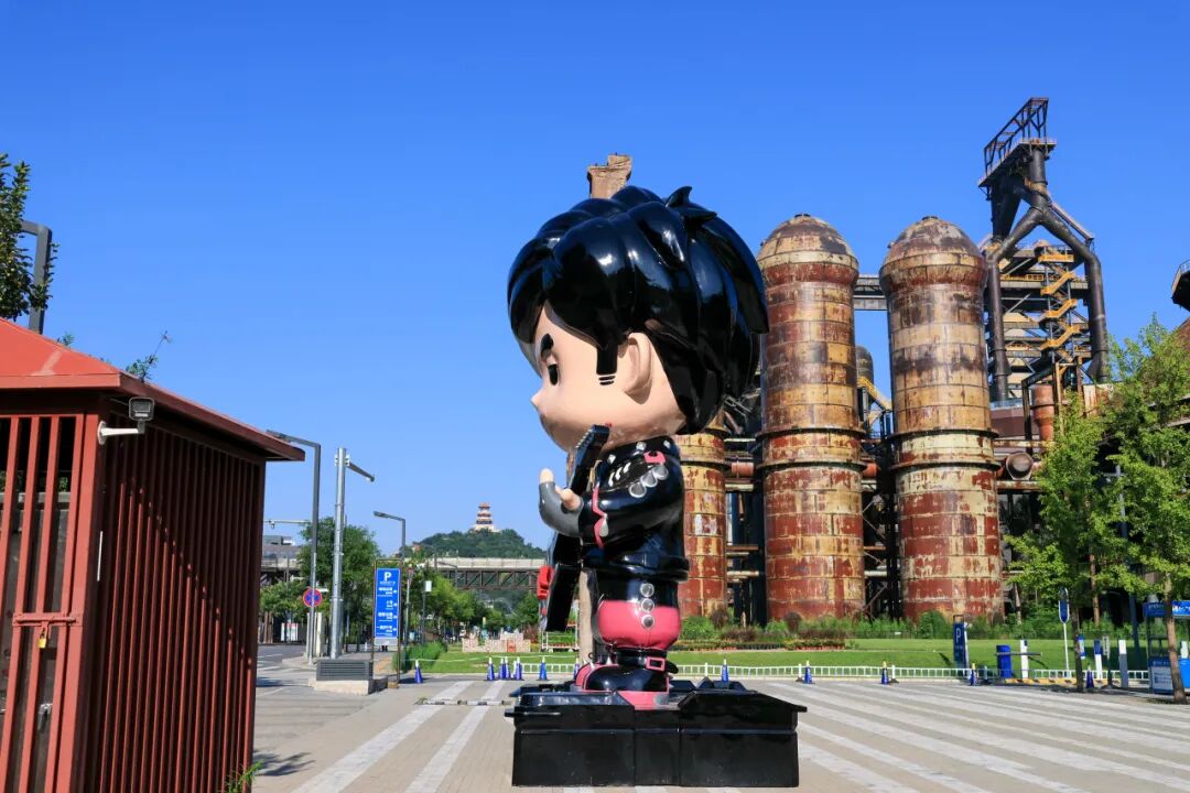 一尘不染的蓝天,近处巍峨的钢铁高炉,远处高耸的功碑阁,都与周同学大娃形成奇妙又浪漫的互动。来首钢园与周同学合影留念,一起回忆青春音乐,一起探索无限可能。