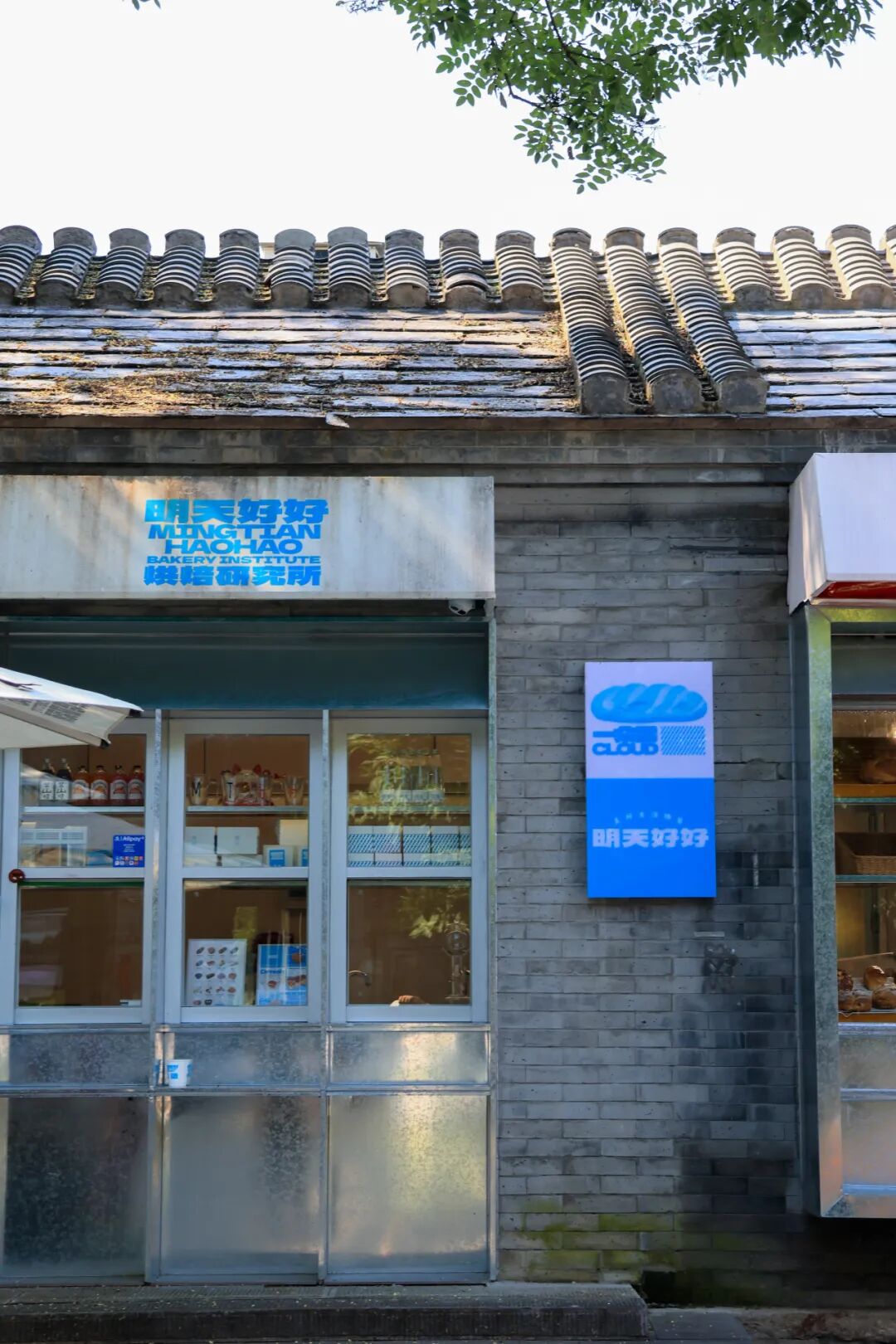 清晨,烟火气十足的模式口历史文化街区里,忽然飘出了一缕令人愉悦的新麦香——“明天好好烘焙研究所”的面包出炉啦!古道斯存对面,纯净的蓝白配色,灰砖玻璃窗口,面包师正在认真烘焙,浓郁的香气吸引人们纷纷驻足。