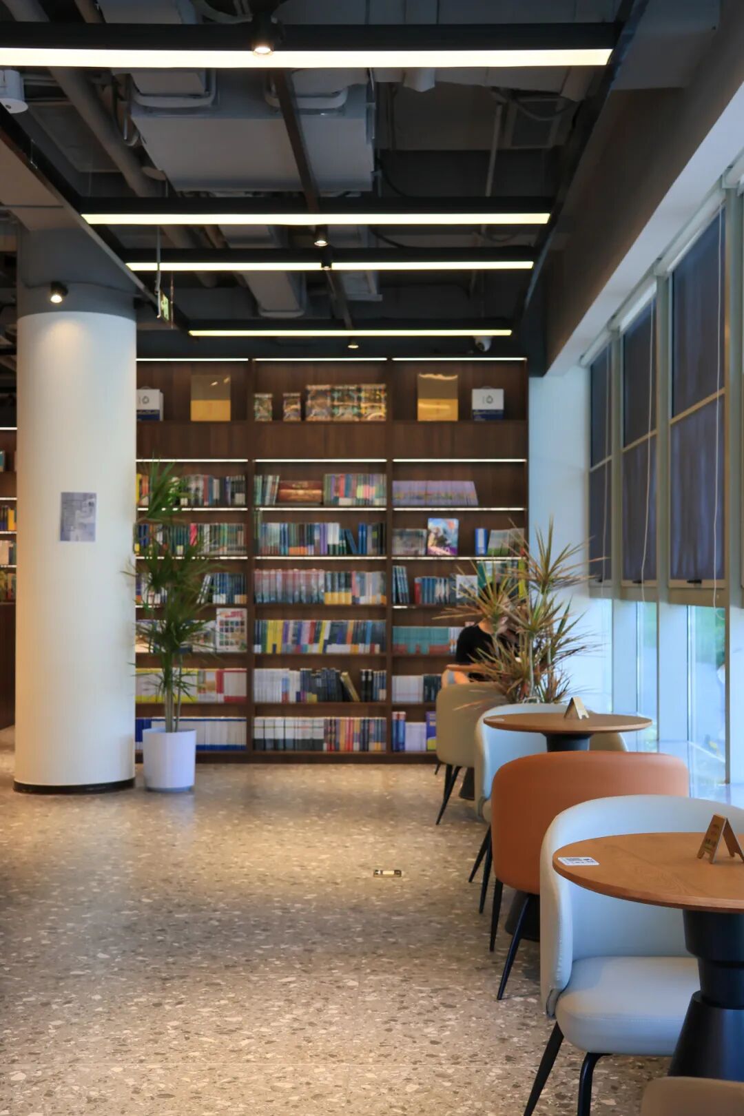 饮居咖啡宽阔明亮的店内书咖一体,一侧是书籍区,文学、艺术、旅行、哲思等各类书籍触手可及,香氛、独特精品文创构筑成一片浩瀚的文艺海洋。另一侧则是阅览区,敞亮的落地窗、舒适的桌距、贴心配置的充电口,是每个人都梦寐以求的“精神港湾”。