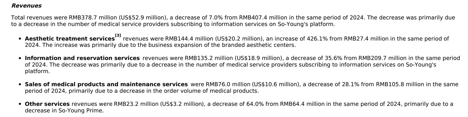 医美产品及维养服务销售收入为7600万元,较2024年同期的1.058亿元下降28.1%,主要因医美产品订单量减少。