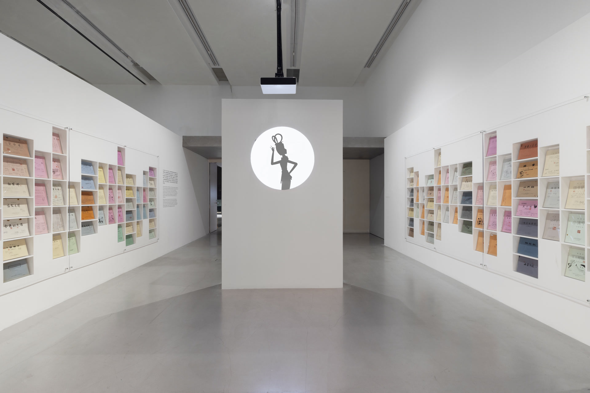 穿越一片色彩斑斓的经典动画海报林,进入“序厅”,迎面而来的宽幅视频中闪烁着不同时期的“上海美术电影制片厂”片头集锦,背后则投映着上美影经典动画角色的动态剪影。两侧墙上整齐陈列着约200本上美影动画的完成台本,向美术电影及电影人无声致敬。
