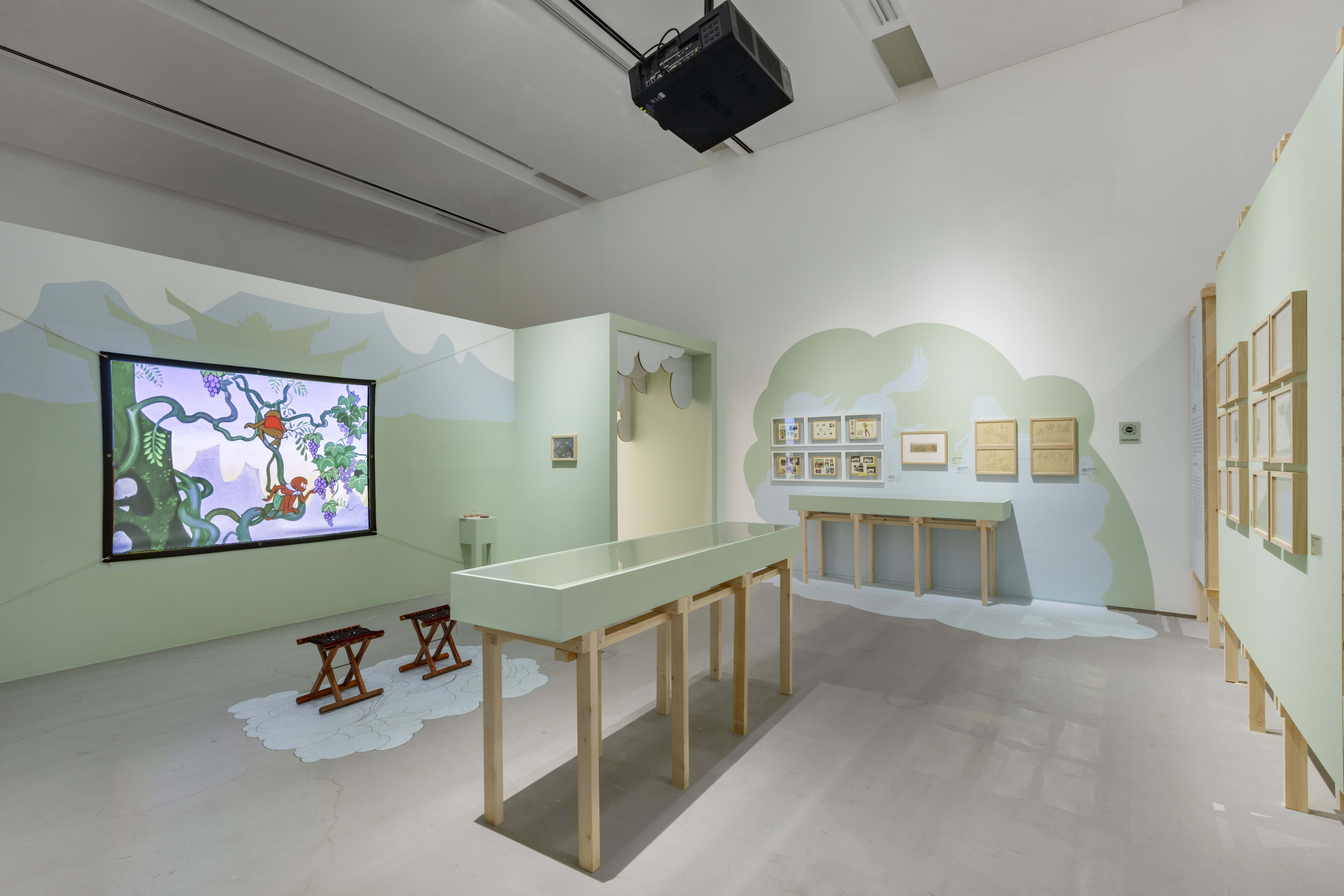 在“媒介探索”版块,展览根据不同媒介的创作方式,分别介绍了手绘动画、剪纸动画、水墨动画、偶动画四大片种的特征。同时,展览复原美术片不同片种的工作场景,引领观众深入了解不同媒介美术电影的制作技法。在展厅结尾处,“绘动之旅”版块以时间轴的方式,串联起文献、实物、影像、大事记等图文资料,全景式呈现上海美术电影的百年发展史。