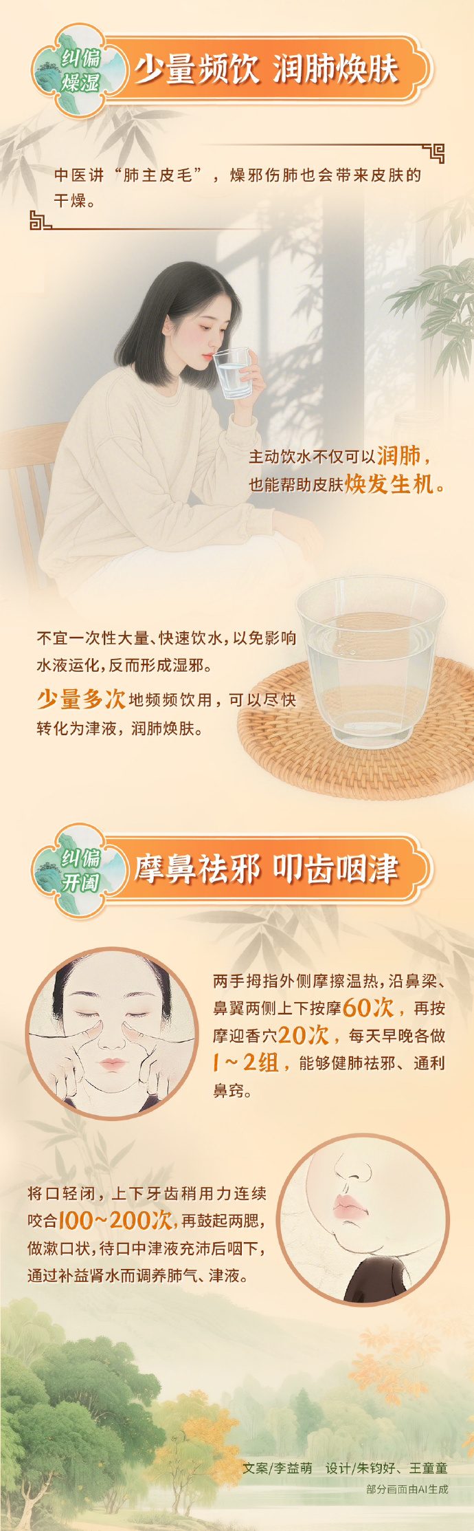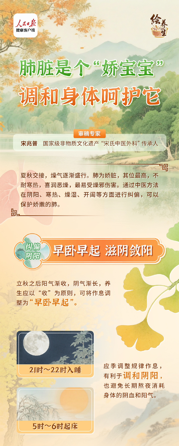 夏末秋初,燥气渐盛,最易伤肺。中医讲“肺为娇脏,喜润恶燥”,此时需"和中纠偏",以润制燥。中医分享4个养生招:早睡早起,滋阴敛阳;凉润秋燥,兼顾脾胃;少量频饮,润肺焕肤;摩鼻祛燥,叩齿咽津。
