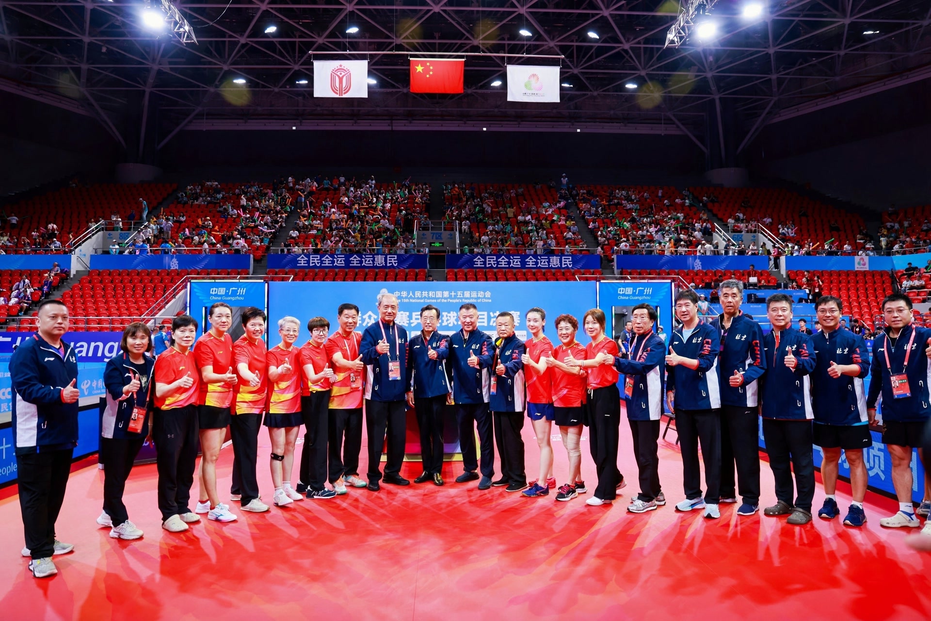 经过七天激烈角逐,8月14日,第十五届全国运动会群众比赛乒乓球项目决赛在广州天河体育中心体育馆落幕。在本次比赛中,北京市代表队取得了5金1铜的历史最好成绩,斩获半数金牌,高居金牌榜第一位,充分展现了首都群众乒乓球运动的竞技水平和深厚底蕴。