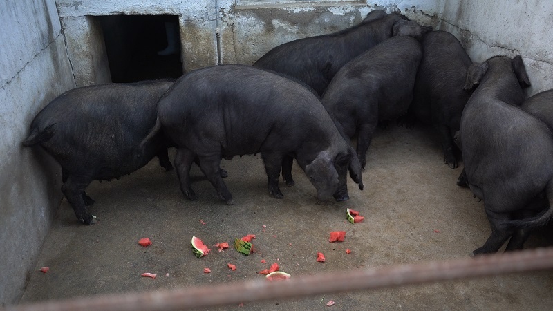 这种模式下养成的东海老淮猪也具备了很多独特的优势。徐卫国介绍,东海老淮猪猪皮较厚,最高可达0.62厘米,肉色深红,大理石纹呈雪花状,肌内脂肪高达3.5%-7.5%,含α-亚酸油、二十碳花生四烯酸,肉味香而不腻。健康的品质也让久违的“一家食肉满村香”的感觉又回来了。