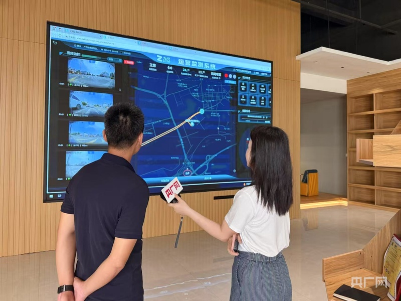 调度中心的运营监测系统正实时跟踪无人物流车的行驶轨迹(央广网见习记者 滕艳娇 摄)