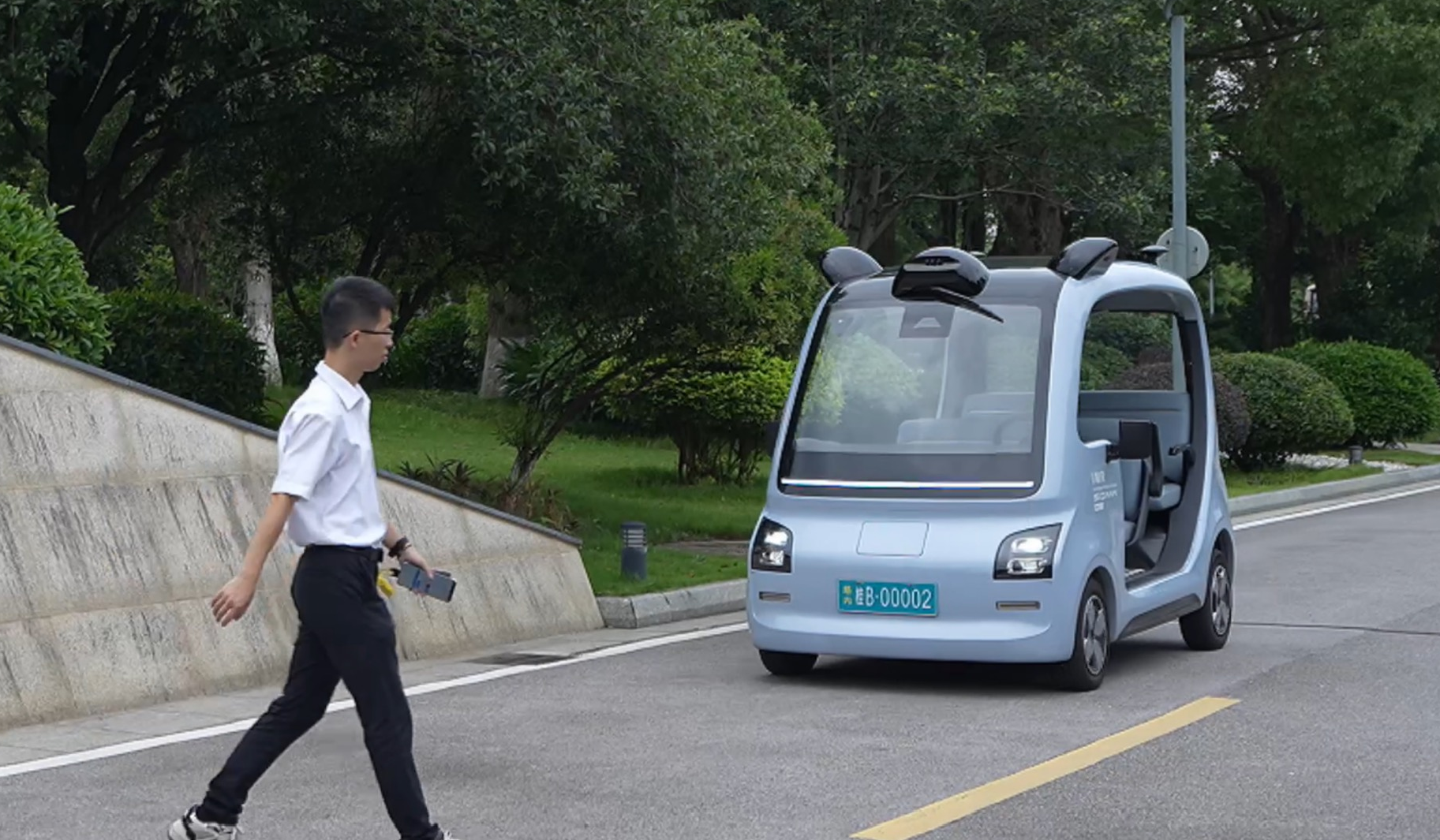上汽通用五菱测试场,无人观光车遇障碍物瞬间减速避让(央广网发 上汽通用五菱汽车股份有限公司供图)