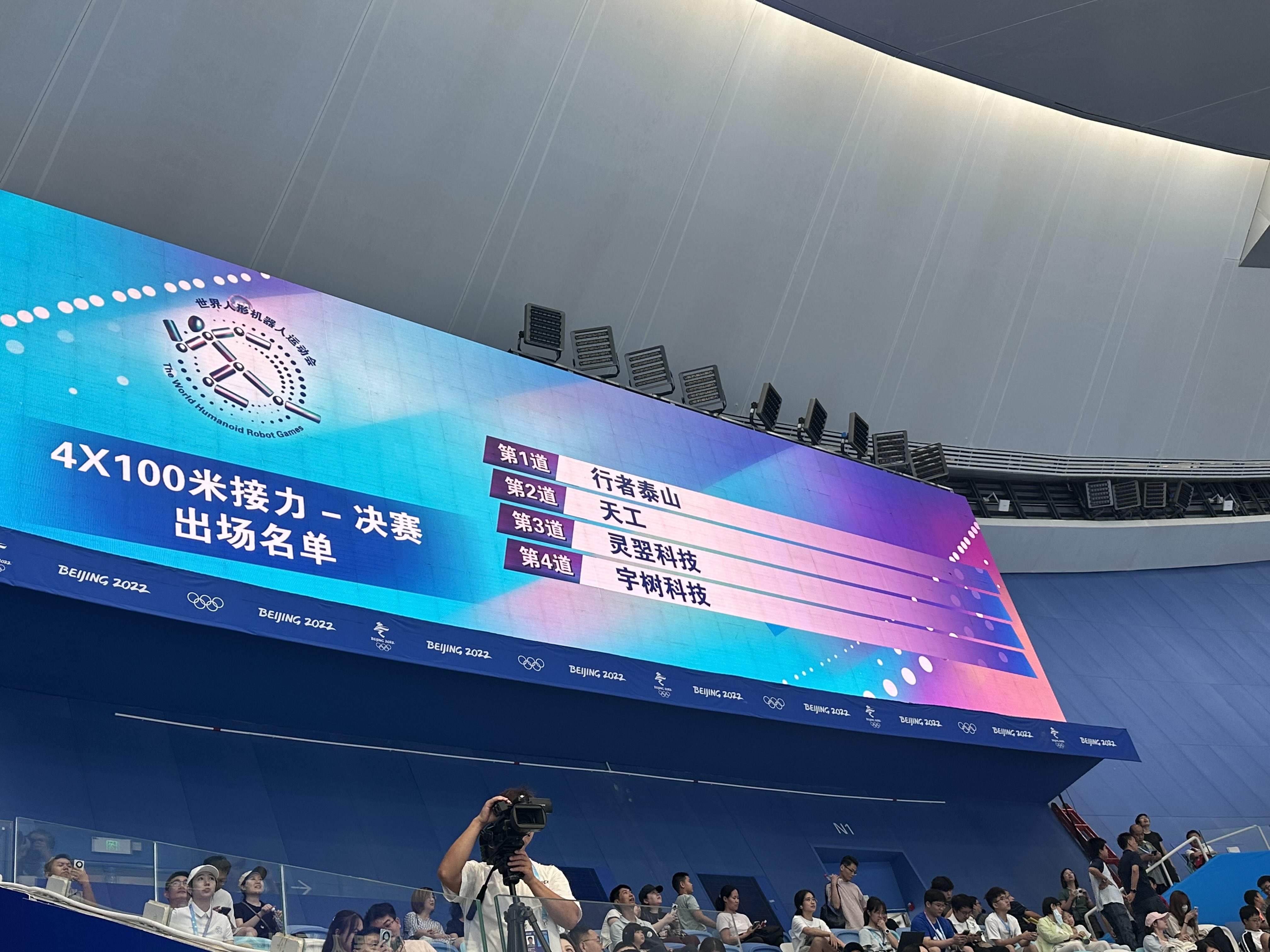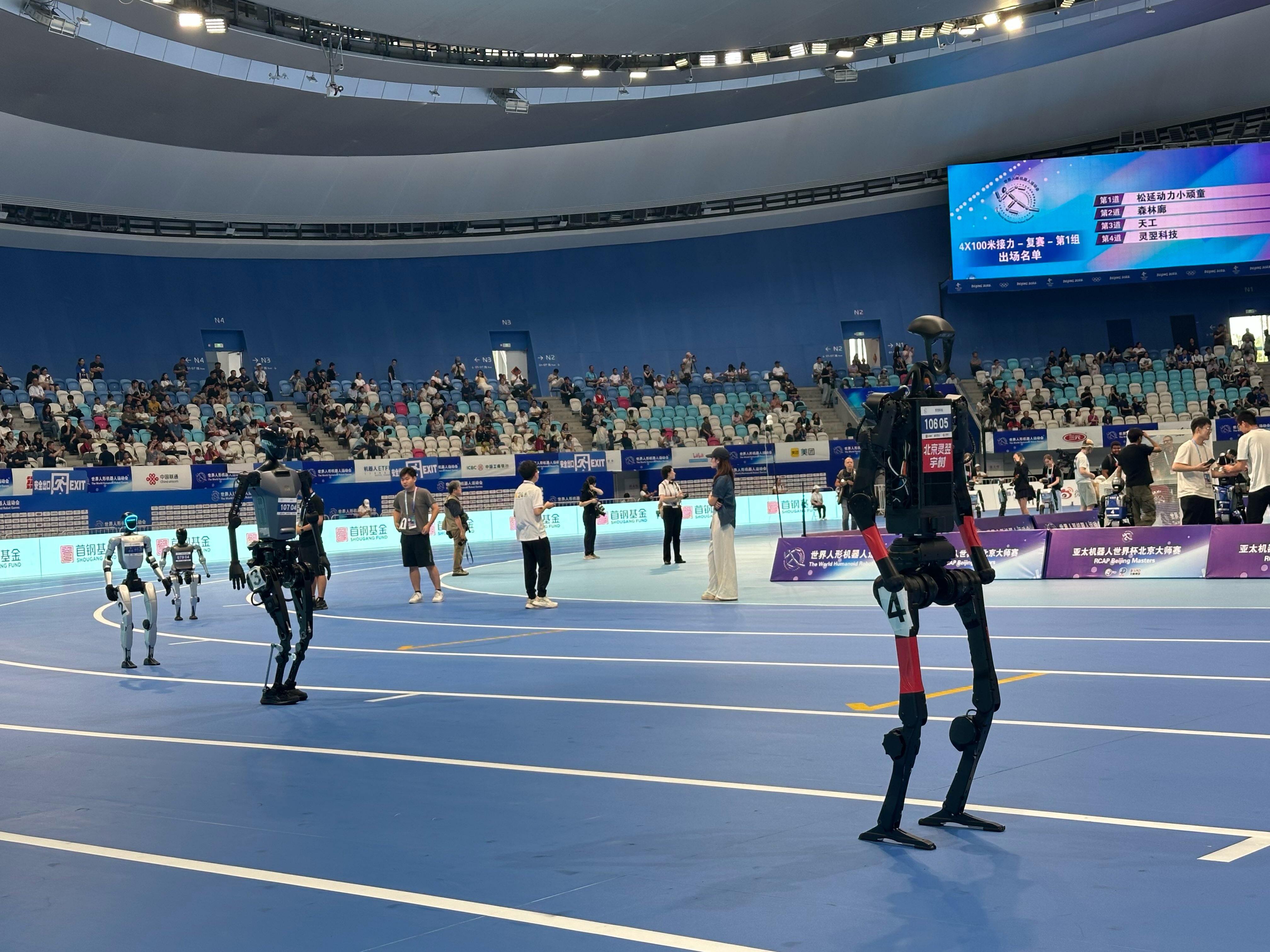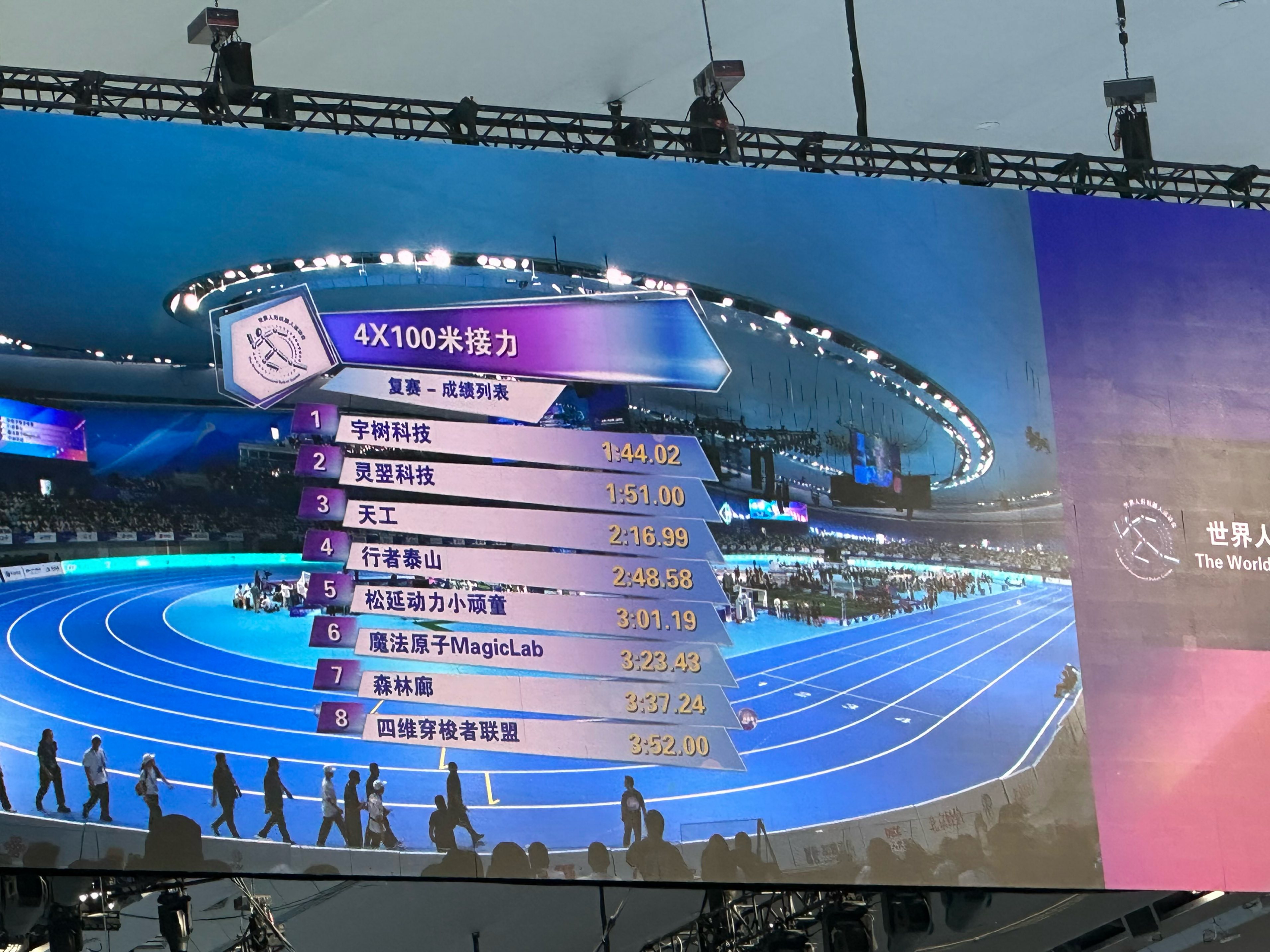 今天上午11点,世界人形机器人运动会4×100米接力复赛上演,8支队伍拼尽全力争夺4个决赛名额。